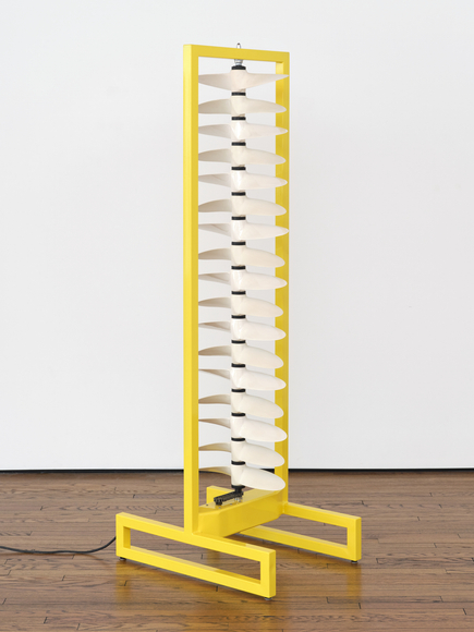 Glazed porcelain, powder-coated steel, steel chain, rubber washers, and motor